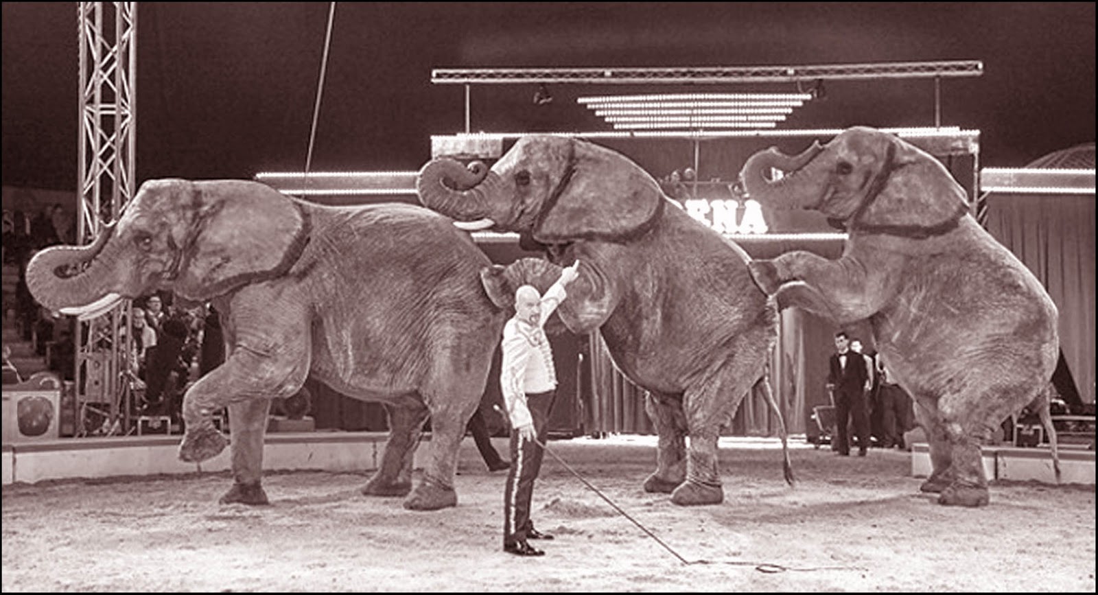 I learned not long before Buckles died that Patti Zerbini's great ivoried Asian male Luke had died just shy of his 38th birthday on the 24th of November of a troubling heart valve He was a very gentle giant that was never any trouble Patti now has just 4 elephants up at her "Two Tails Ranch" in Williston where some years back she cared for many of the "Ringling Herd" before their "Polk Pachy Park" She maintains educational elephant programs |